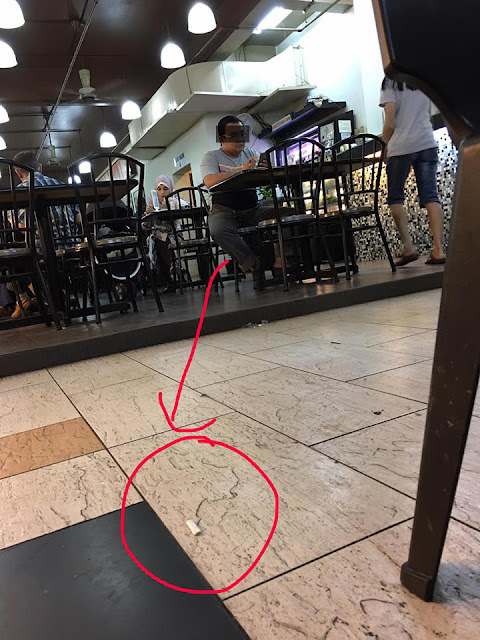 "Kawan hangpa ka ni? Kalau kau perokok tegar macam mana, di tempat awam tak kiralah hang duduk di situ dulu atau depa duduk kemudian, bila hang dah nampak ada keluarga duduk di belakang serta ada anak kecil yang sedang tidur dalam stroller, cuba hang guna akal hang.
