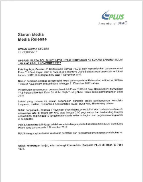 » Update Jawapan PLUS Berhubung Plaza Tol Bukit Kayu Hitam Akan Berpindah Ke Plaza Tol Baharu >> Berita Malay 18