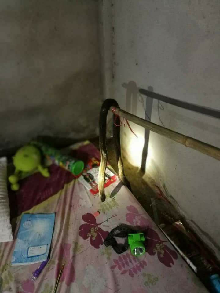 Ketika mangsa ditemui, terdapat seekor ular tedung selar lebih 2 meter turut berada di atas tilam mangsa tidak diketaui dari arah mana datangnya ular itu.